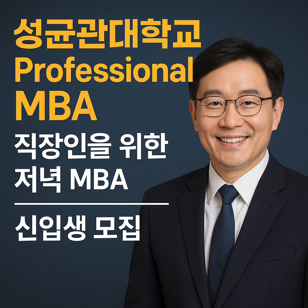 | [성균관대MBA] 국내 명문대 성균관대학교 Professional MBA 2026년 신입입학 지원 컨설팅 안내 (1) | 2025.08.20 |