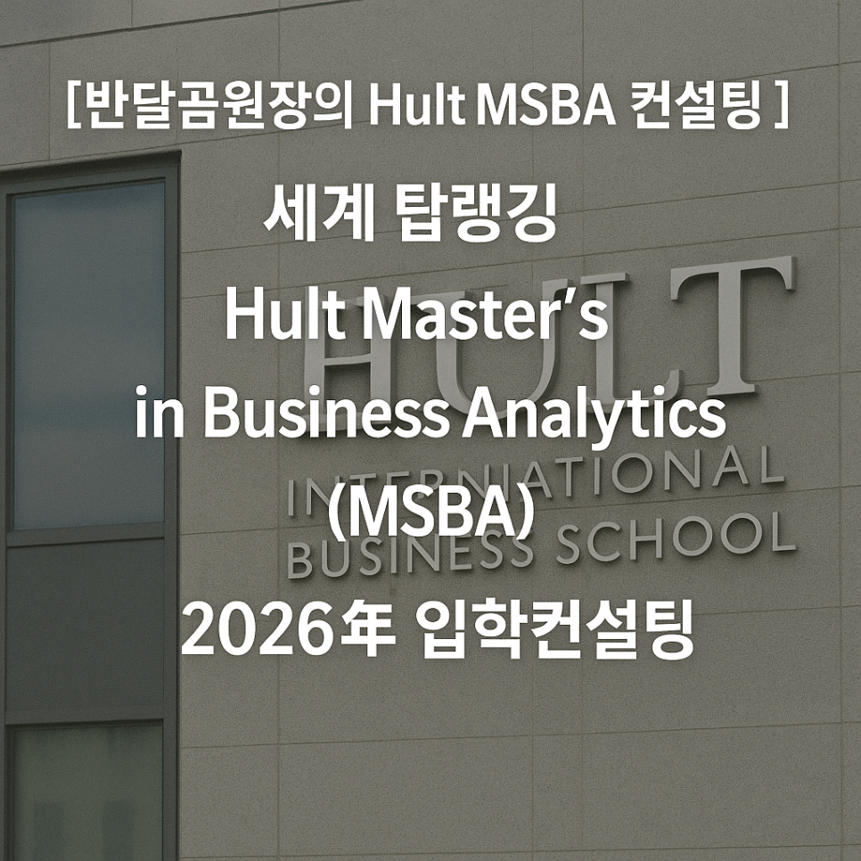 ※ 반달곰원장의 합격 전략: MSBA는 특히 정량적인 분석 능력과 문제 해결 능력을 높이 평가합니다. 에세이와 인터뷰에서는 단순히 데이터를 다룰 줄 아는 것을 넘어, '분석 결과를 어떻게 비즈니스 성과로 연결할 것인가'에 대한 통찰력을 보여주는 것이 중요합니다. GMAT/GRE 면제 심사를 위해서는 반드시 전문 컨설팅을 통해 본인의 강점을 효과적으로 어필해야 합니다.