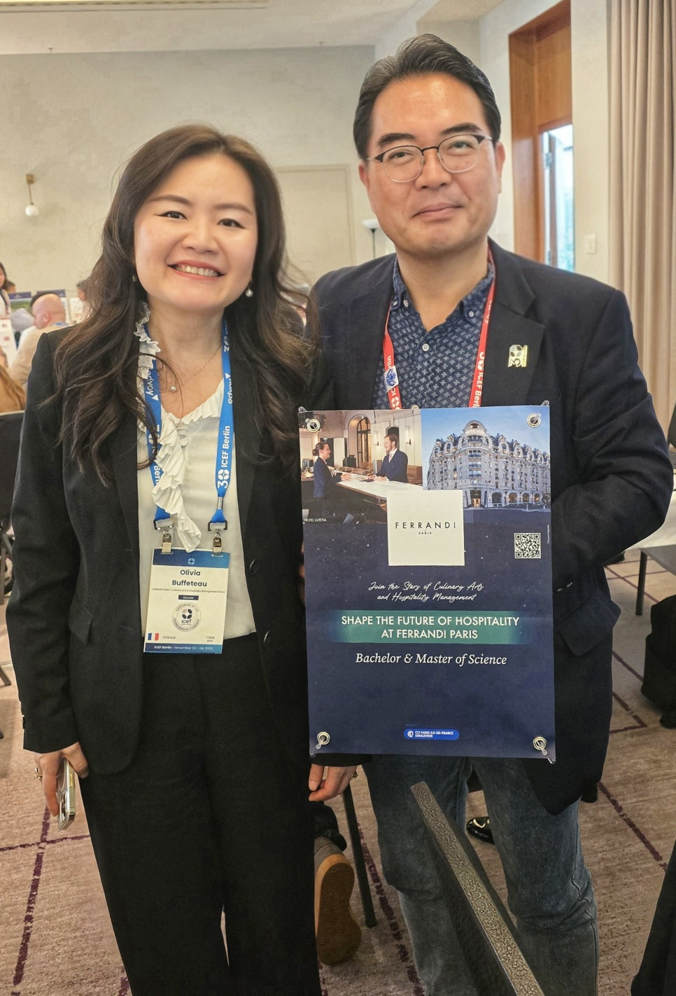 FERRANDI Paris (페랑디 파리)의 국제 비즈니스 개발 총괄, Ms. Olivia Buffeteau와 ICEF Berlin에서 미팅 후 사진을 찍는 반달곰원장