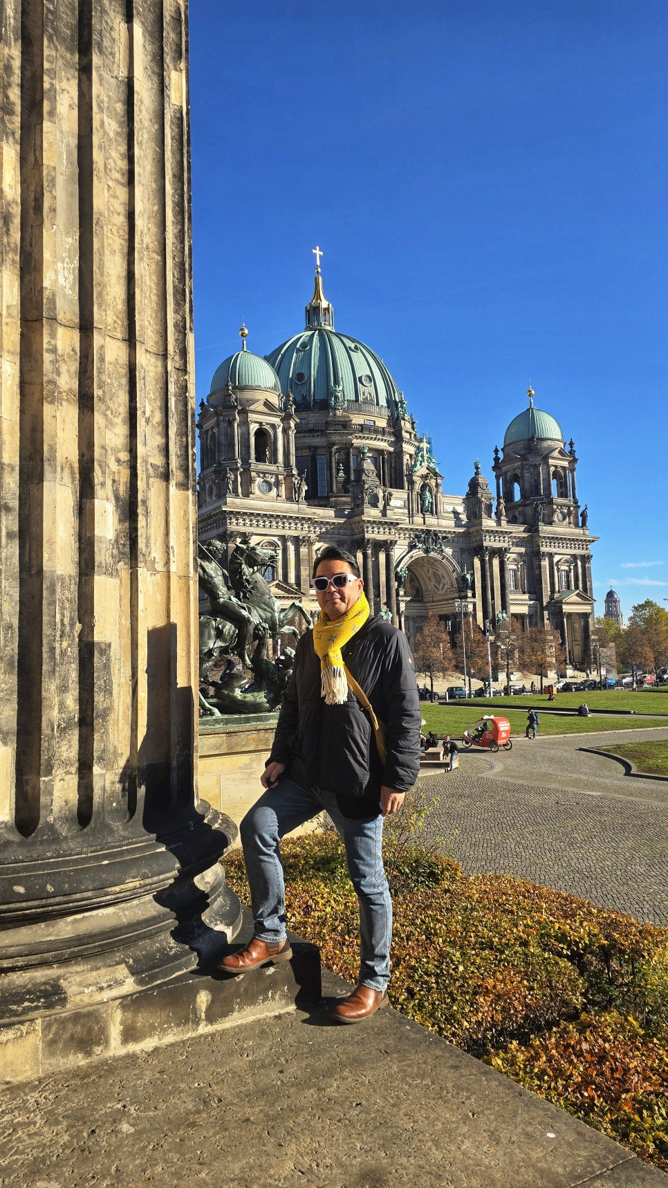 2025년 11월 구베를린박물관 건물에서 베를린돔을 배경으로 사진찍는 반달곰원장