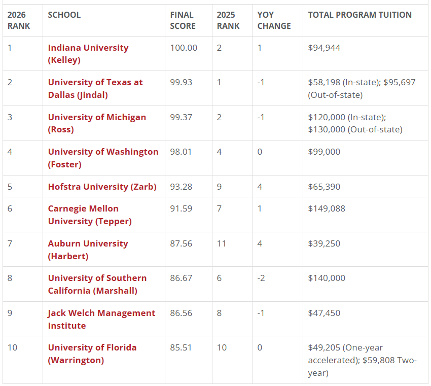 🏆 2026 Poets&Quants 온라인 MBA TOP 3 요약